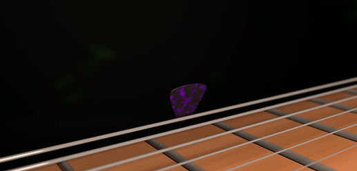 Follwing a pick playing some satisfying chords before the pick falls, disrupting the vibe. Ratatouille-style abstract animations would add some nice secondary action.